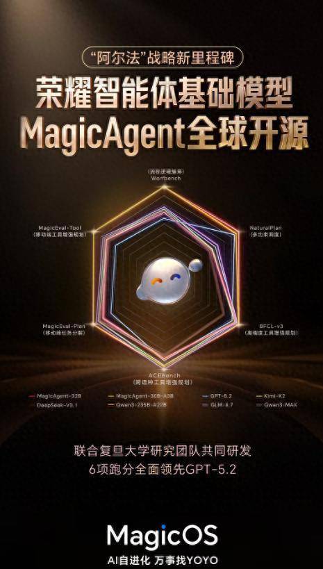 3月3日音尘,据荣耀官方音尘,荣耀当天晓谕其智能体基础模子 MagicAgent 面向群众开源。据先容该模子由荣耀联贯复旦大学研发,定位为行业首个赞助全场景泛化方案与异构任务编排的基础模子,亦然荣耀YOYO智能体的“大脑”。