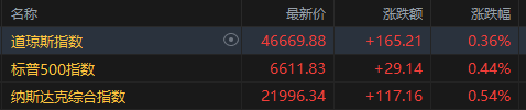 适度收盘,标普500指数涨0.44%,报6611.83点;纳斯达克轮廓指数涨0.54%,报21996.34点,均连涨4个往翌日。说念琼斯指数涨0.36%,报46669.88点。