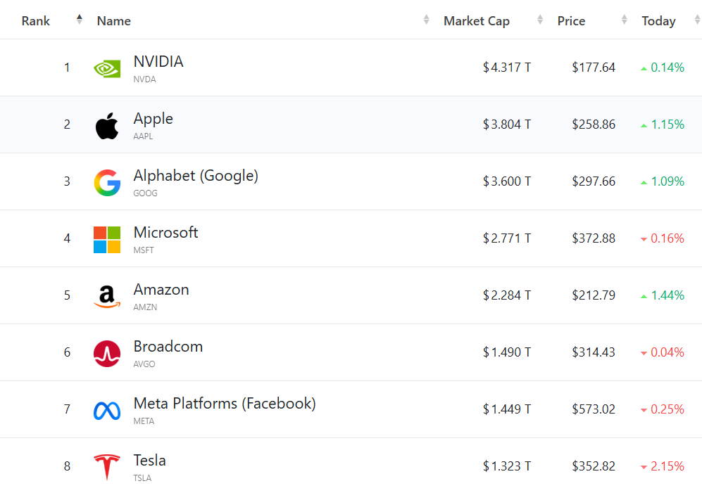 好意思股科技巨头涨跌不一,(按市值陈列)英伟达涨0.14%,苹果涨1.15%,谷歌C涨1.09%,微软跌0.16%,亚马逊涨1.44%,博通跌0.04%,Meta跌0.25%。